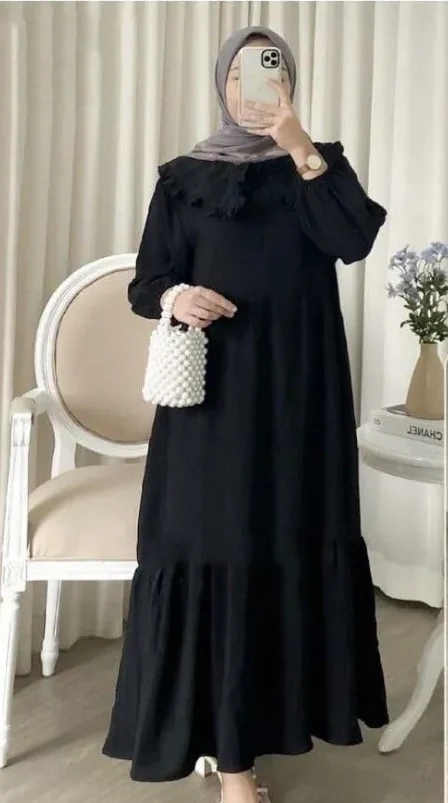 Menggunakan Berbagai Jenis Kain: Midi dress dapat dijahit dari berbagai jenis kain, seperti rayon, cotton, linen, dan polyester, memberikan beragam pilihan gaya.