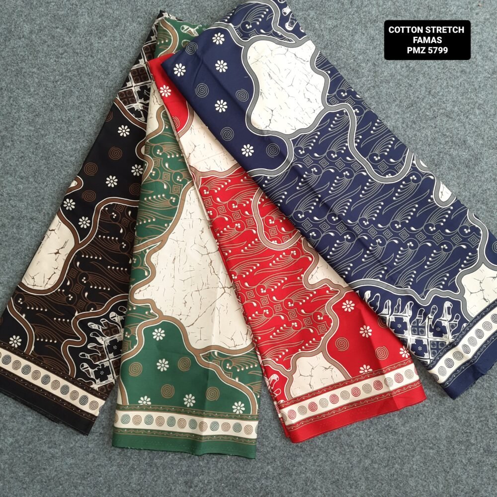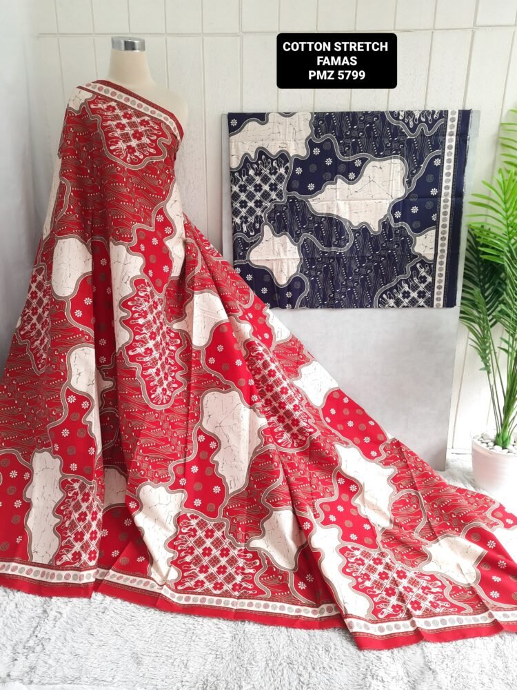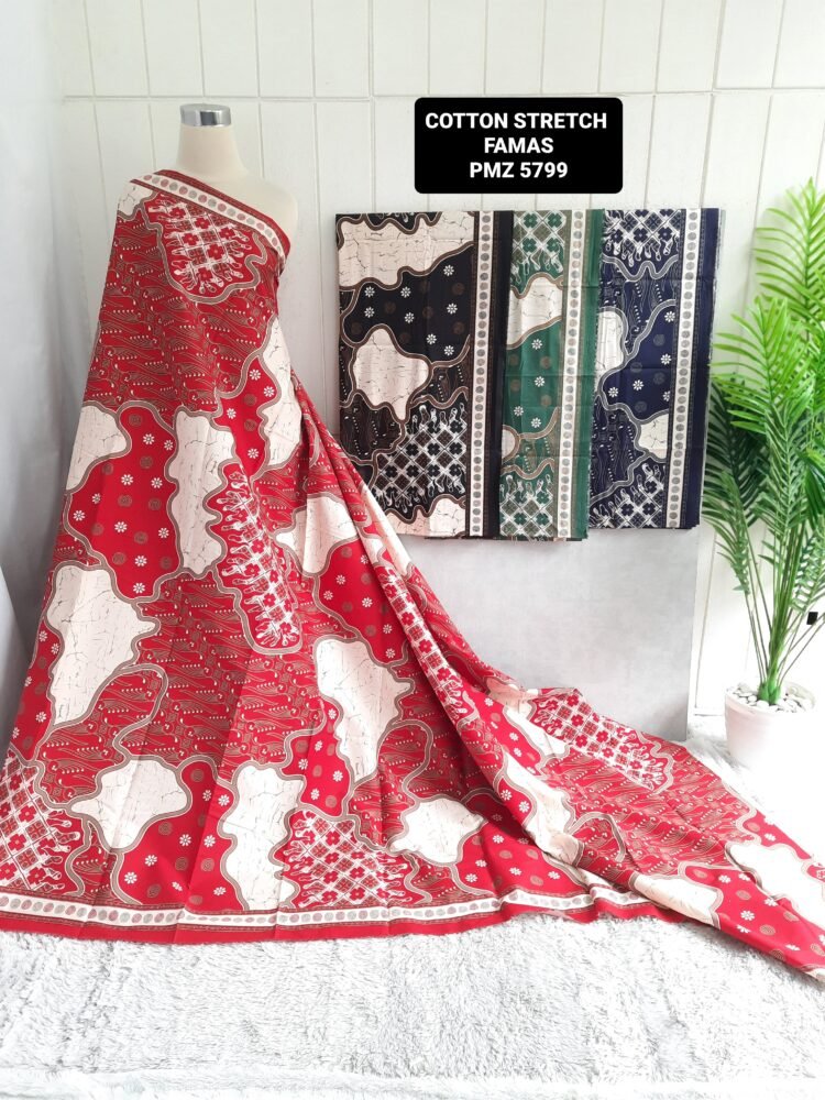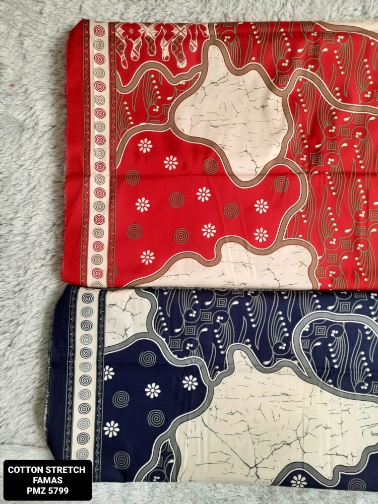 Kain printing yang dicetak dibahan dasar cotton stretch. Terbuat dari 100% kapas berkualitas beranyaman plat, dengan tambahan spandex. Memberikan efek elastis.
