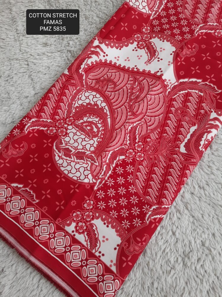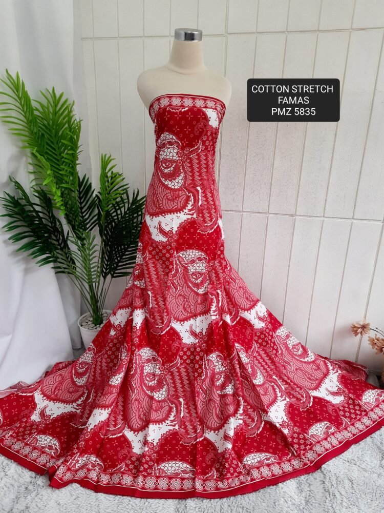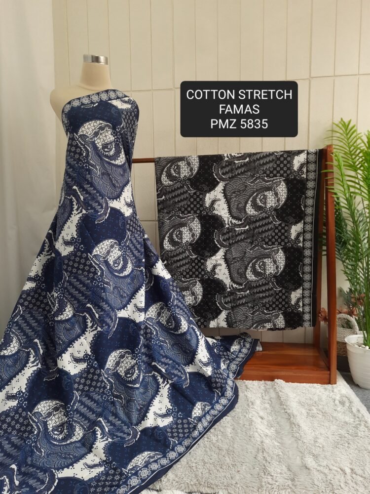 Kain printing yang dicetak dibahan dasar cotton stretch. Terbuat dari 100% kapas berkualitas beranyaman plat, dengan tambahan spandex. Memberikan efek elastis.