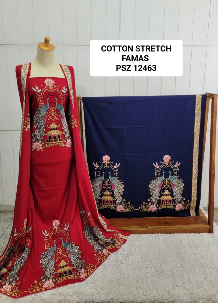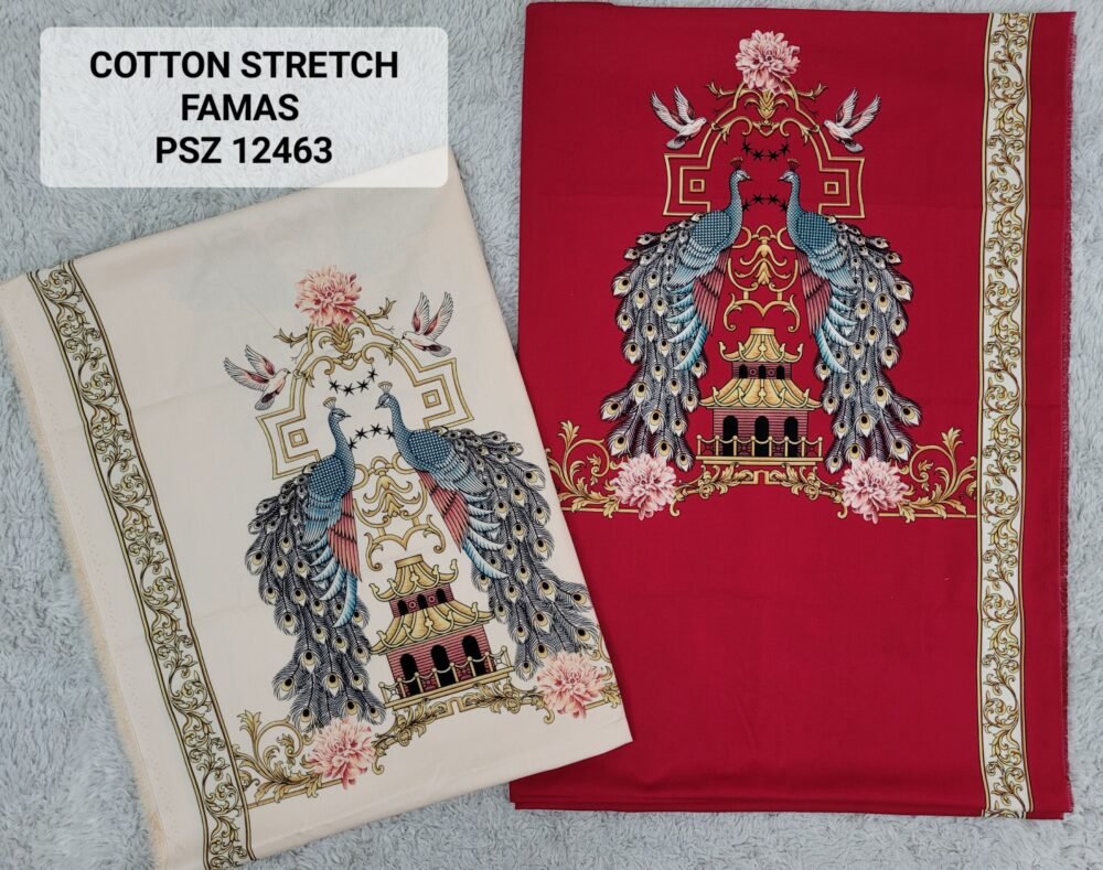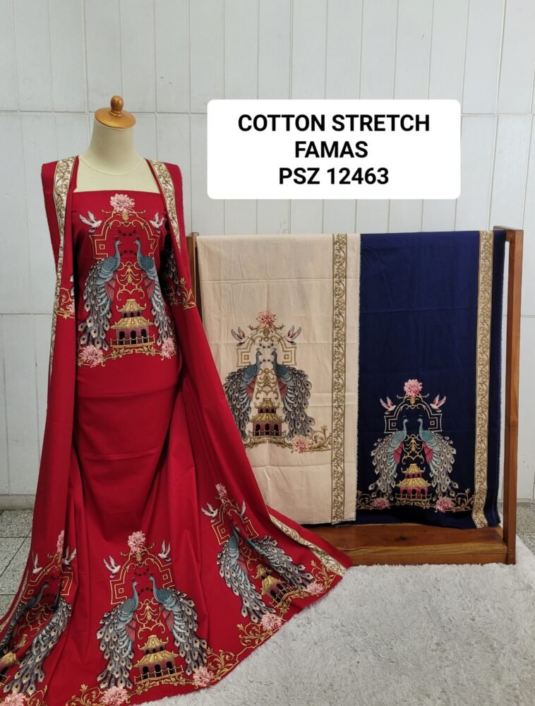 Kain printing yang dicetak dibahan dasar cotton stretch. Terbuat dari 100% kapas berkualitas beranyaman plat, dengan tambahan spandex. Memberikan efek elastis.