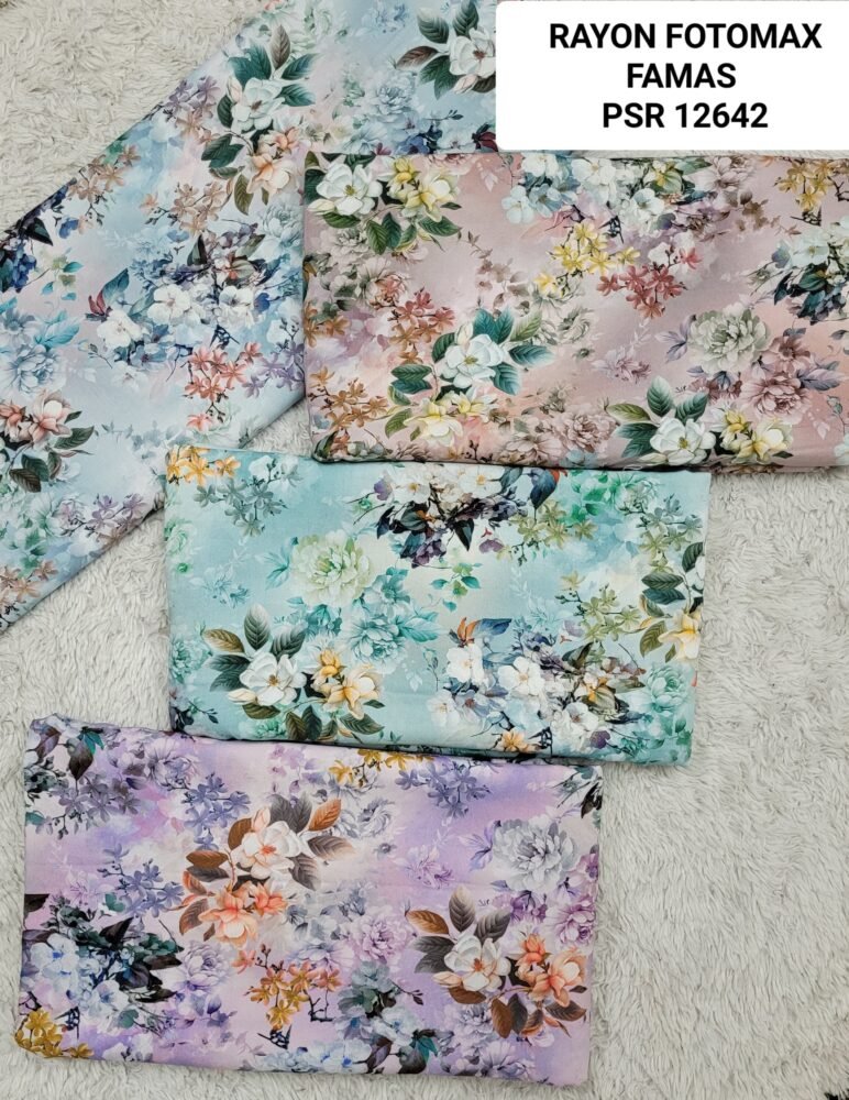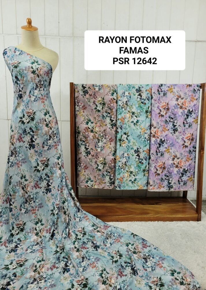 Kain printing yang dicetak di bahan dasar rayon Fotomax yang merupakan bahan selulosa murni. Karena terbuat dari 100% serat alami, sehingga bahan rayon printing ini terasa nyaman dipakai, adem dan halus.