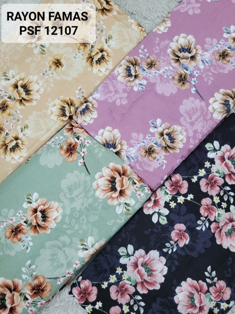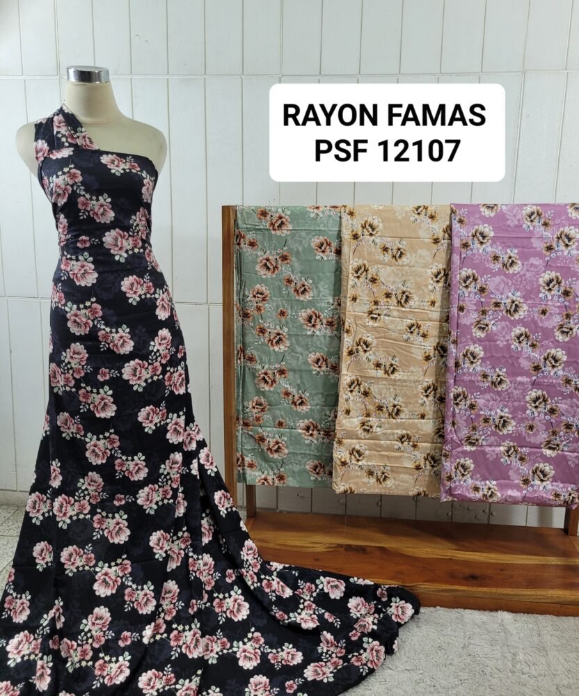 Kain printing yang dicetak di bahan dasar rayon plat yang merupakan bahan selulosa murni. Karena terbuat dari 100% serat alami, sehingga bahan rayon printing ini terasa nyaman dipakai, adem dan halus.