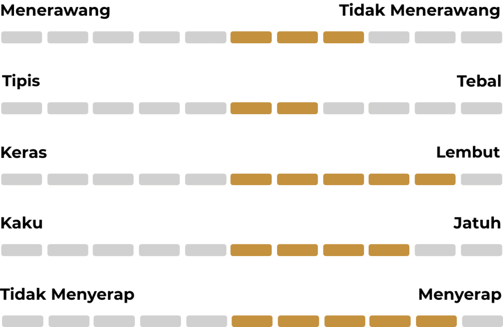 | Serat | : Twill 2/1 | Karakteristik | : Lembut |