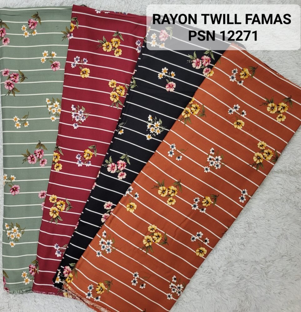 Kain printing yang dicetak di bahan dasar rayon Fotomax yang merupakan bahan selulosa murni. Karena terbuat dari 100% serat alami, sehingga bahan rayon printing ini terasa nyaman dipakai, adem dan halus.